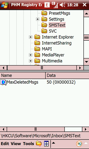 1. Navigate to the key [HKEY_CURRENT_USER\Software\Microsoft\Inbox\SMS]